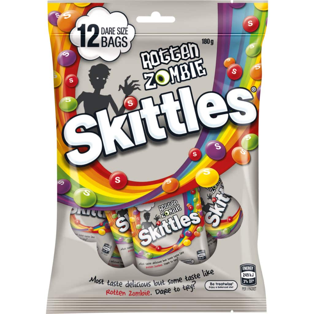 The all-new M&M’s Cookies and Screeem and Skittles Rotten Zombie add a little novelty to the month of October whether you’re five of 55 – after all, what’s the worst that can happen from a haunted bag’ o’ choccies and lollies?