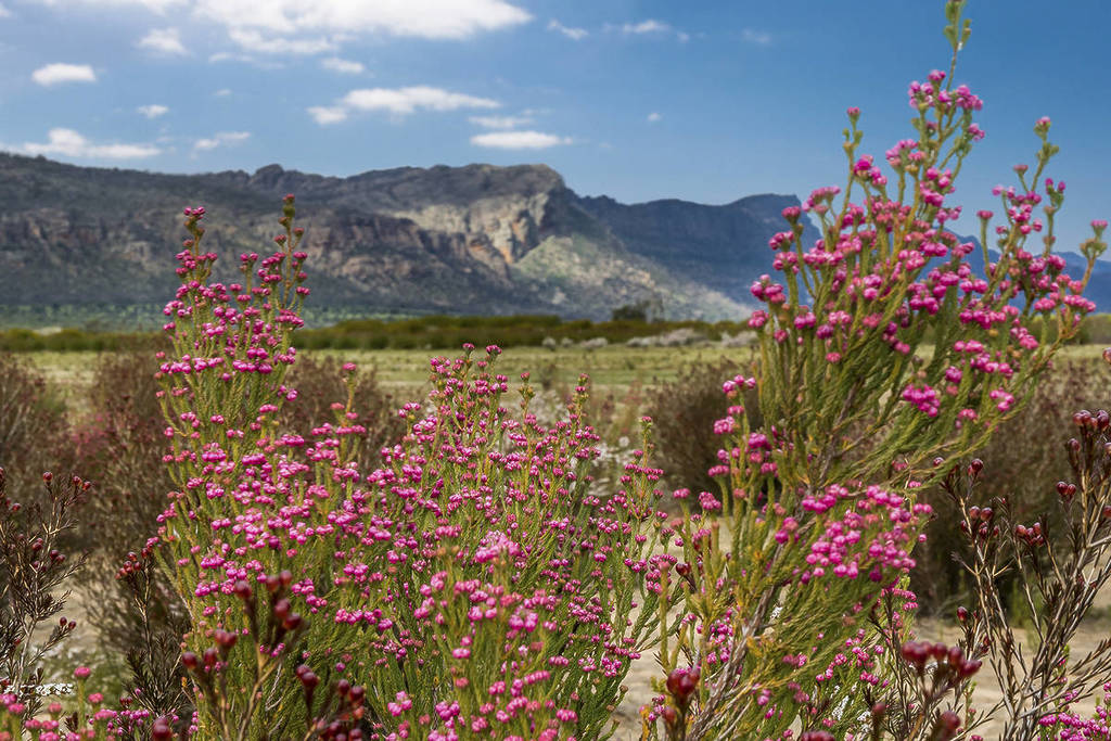 Your journey begins at the Picaninny carpark on either Victoria Valley Road or Grampians Tourist Road, just a few minutes north of Dunkeld. From there, follow the path through the woodlands and make your way slowly up to the summit. As you go, look out for pretty wildflowers and native grass species. In the southern plains of the Grampians, you’ll likely find purple, pink and orange peas, bluebells, pincushions, flowering shrubs and green and red correas.